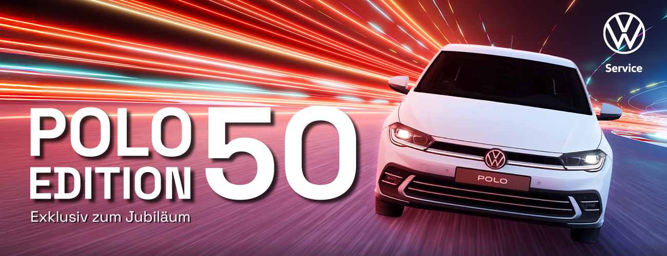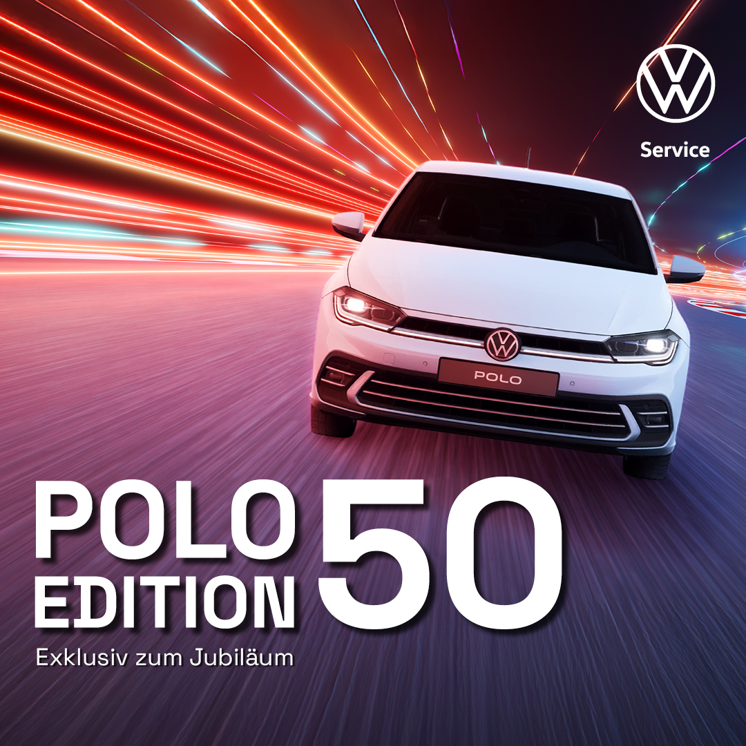Der Polo EDITION 50 bringt alles mit, was den Polo so beliebt macht – und zum Jubiläum als besonderen Auftritt: Mit exklusiver Lackierung in Crystal Ice Blue Metallic, 16-Zoll-Leichtmetallräder „Coventry“ (optional auch 17 Zoll „Tortosa“), abgedunkelte Scheiben und dezent in die B Säulen integrierten 3D-Plaketten „50 Jahre“.